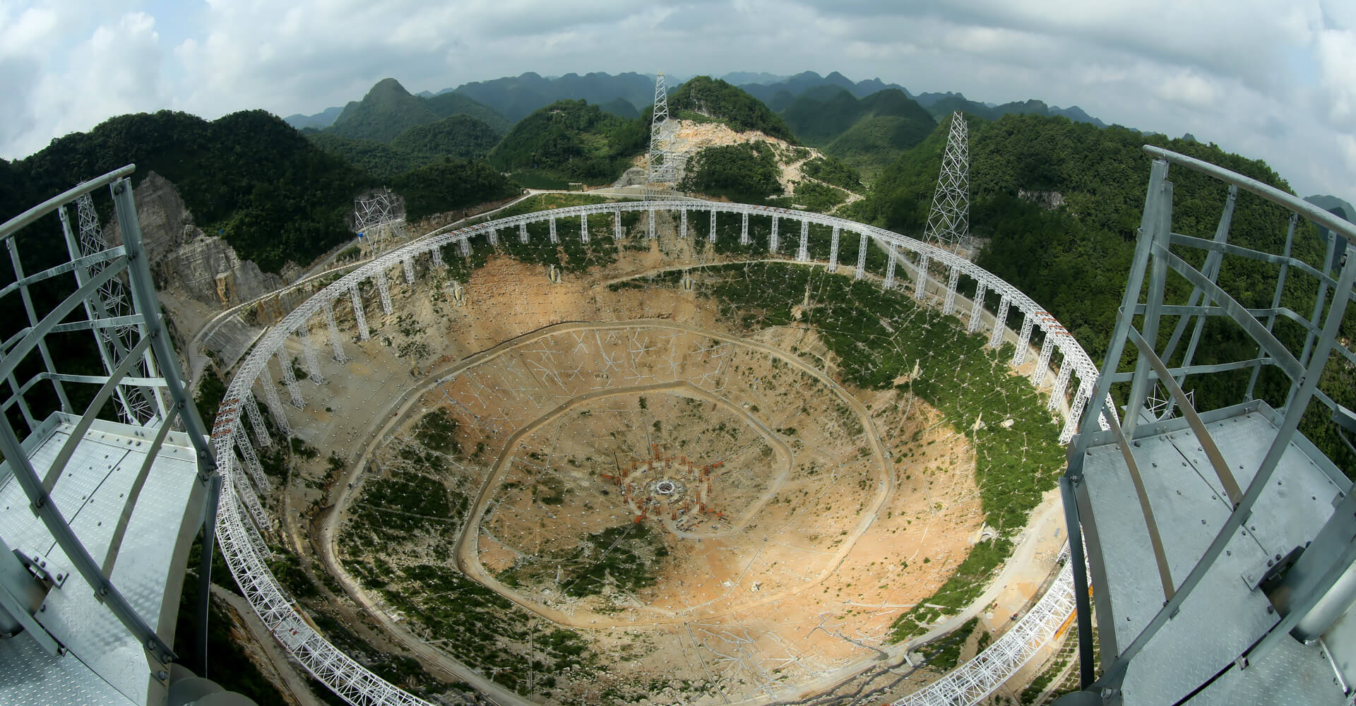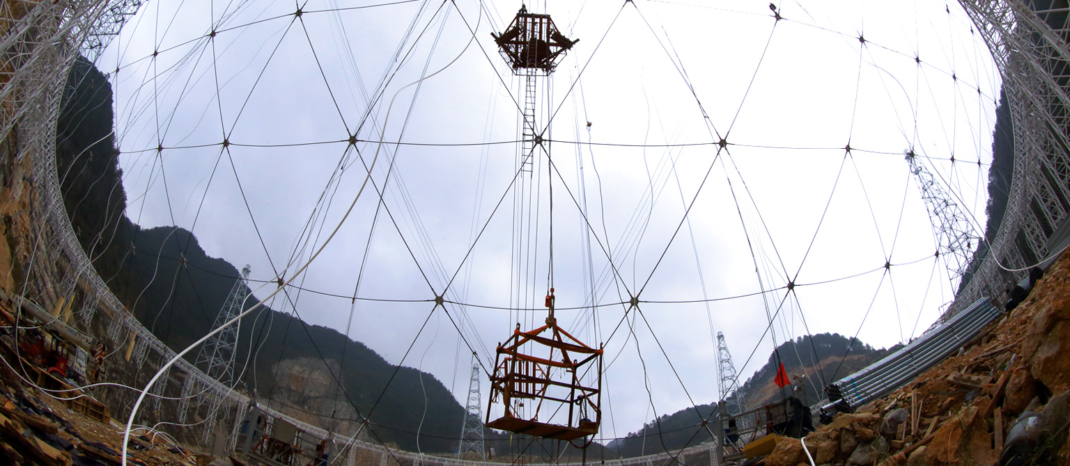 FAST反射面具有四大特點。一、尺度巨大,口徑500米、面積是美國望遠鏡的2.5倍。二、主動變位,反射面在工作時,能實時調(diào)整形態(tài),在觀測方向形成300米口徑瞬時拋物面以匯聚電磁波,這完全不同于美國固定反射面望遠鏡。三、超高精度,作為天文望遠鏡,精度需達到毫米級。四、邊界復雜,工程位于地質(zhì)、地貌復雜的喀斯特洼地。