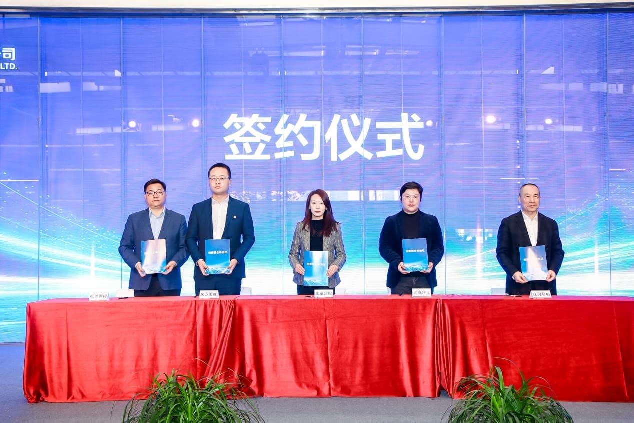 2024年12月27日,北京城市副中心張家灣設(shè)計(jì)小鎮(zhèn)的樣板工程——北京建院新總部項(xiàng)目(未來(lái)建筑科創(chuàng)中心)順利封頂,進(jìn)入項(xiàng)目施工的最后沖刺階段。當(dāng)日的2035未來(lái)辦公原型建筑發(fā)布會(huì)上,北京建院發(fā)布了《科技創(chuàng)新為導(dǎo)向的新建設(shè)模式》《建筑科創(chuàng)體系2035》《建筑科創(chuàng)系列產(chǎn)品發(fā)布》,北京建院、北京建工、東方雨虹、江河幕墻、杭蕭鋼構(gòu)簽署創(chuàng)新聯(lián)合體協(xié)議。