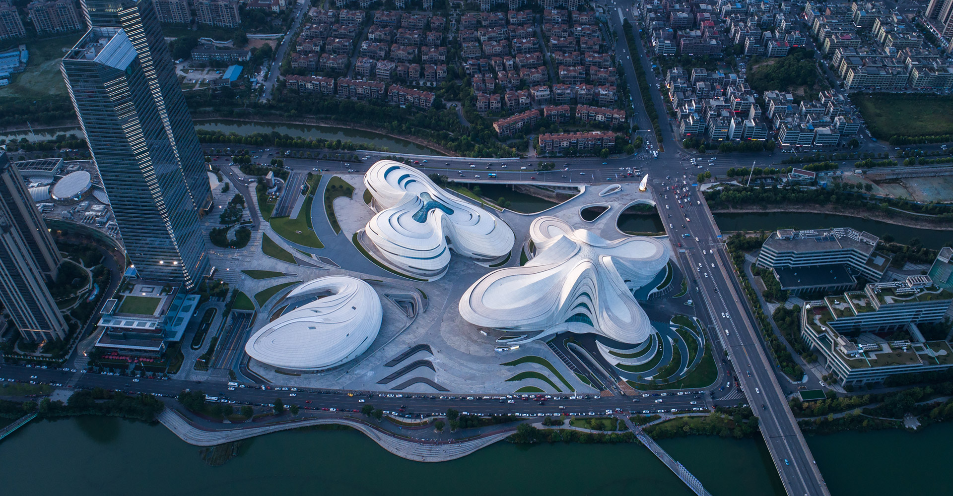 本項目三個建筑造型緣起于“梅花”,每個單體由“梅花”的花瓣衍生而來。大劇場為四片花瓣,藝術館為三片花瓣,小劇場為一片花瓣,高高低低地散落在梅溪湖畔。三個抽象的造型均為行云流水般的流線型設計,主體均為(鋼)框架-鋼筋混凝土剪力墻結構體系,屋蓋均為單層鋼網格結構體系。
