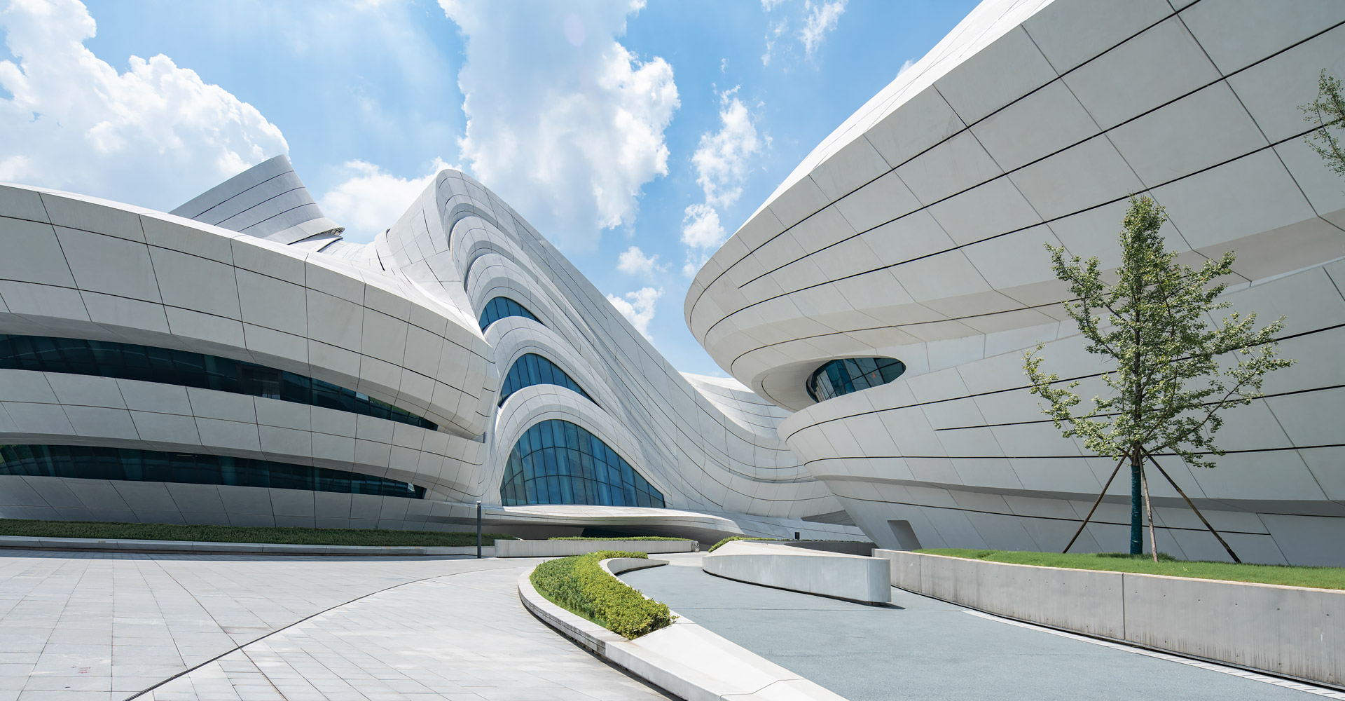 3、本工程外幕墻造型奇特,猶如綻放的“芙蓉花”,完全由大小不一、曲率不同的 1.1 萬余塊 GRC 拼接而成,每塊 GRC 與主體結構的連接角度不盡相同