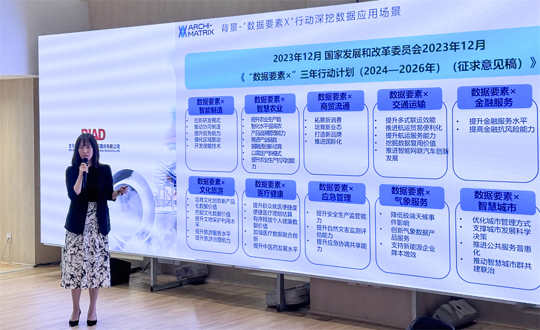 數字科技研究院數據資產產品總監田晶以《數據要素X建筑》為題,介紹了建筑領域數據交易和數據資產化過程中面臨的痛點難點、典型案例以及下一步發展方向,提出了作為建筑行業在數據要素時代的核心能力,數據資產管理平臺承載著行業海量數據,具備高效數據處理、深度分析、直觀展示和數據服務能力,是提升建筑行業數據質量和價值、促進產業鏈協同和創新發展的重要核心組件。該平臺能夠集成多種異構數據,實現基于知識圖譜和本體的數據重構、關聯分析展示和集成多維度數據應用能力。基于該平臺,實現建筑場景下的業務仿真、設備智控、資源優化、節能降碳等發揮數據要素價值的應用。