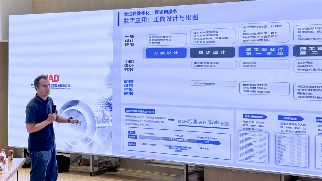 信息部副部長梁楠以《北京建院BIM正向設計助力建筑設計提效》為題,介紹了北京建院在BIM正向設計方面的應用探索和成功案例,并從組織機構、標準及體系設置等方面闡述了北京建院為推動數字化轉型和形成行業領軍優勢,作出的頂層設計及落地實施策略。