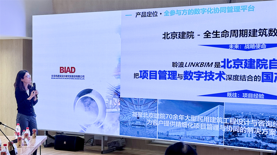 數字科技研究院總監助理余茵以《聆波(LINKBIM)助力工程建設高質量發展》為題,介紹了聆波(LINKBIM)數字化協同管理平臺的研發理念和功能特色。該平臺將項目管理與數字技術進行了深度結合,為建設工程提供協同管理能力;以BIM三維模型及數據為載體,實現項目全過程的分級管理和多方協同。