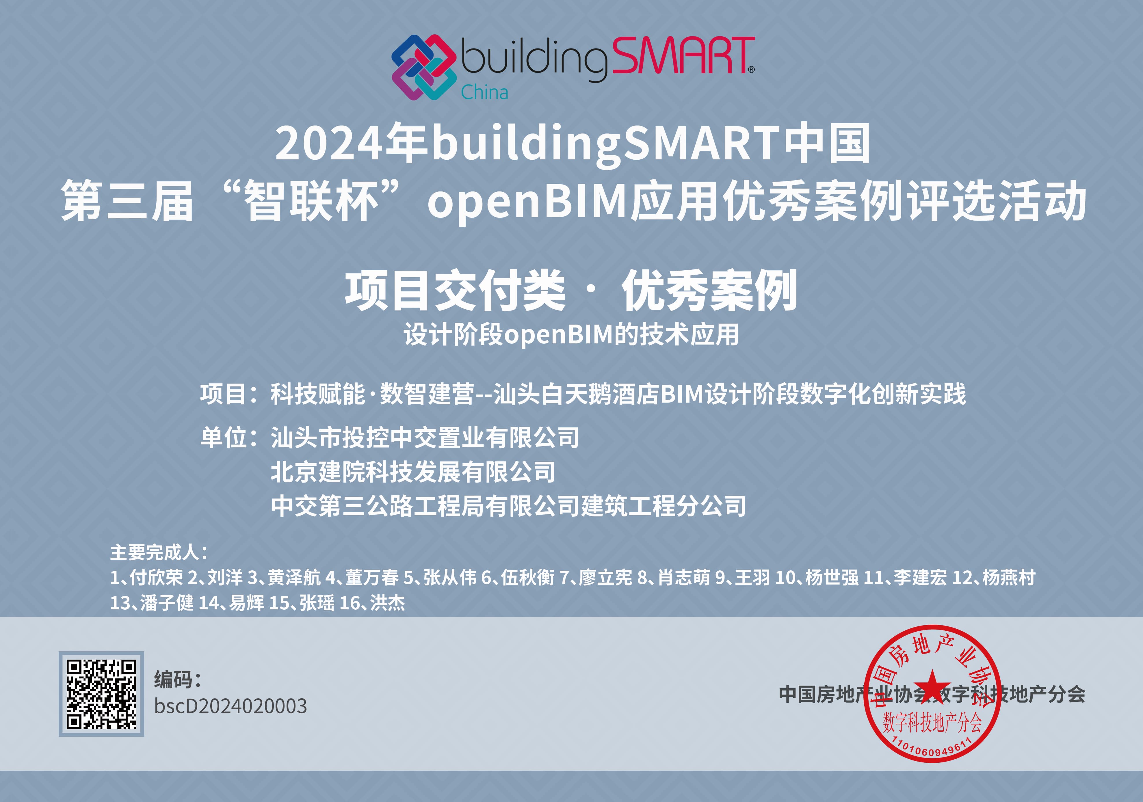 buildingSMART中國副秘書長張學生、中國房地產業協會數字化分會秘書長李波為獲獎單位代表頒獎。此次頒獎儀式不僅是對openBIM應用成果的總結與表彰,更是為行業搭建了一個交流與學習的平臺。