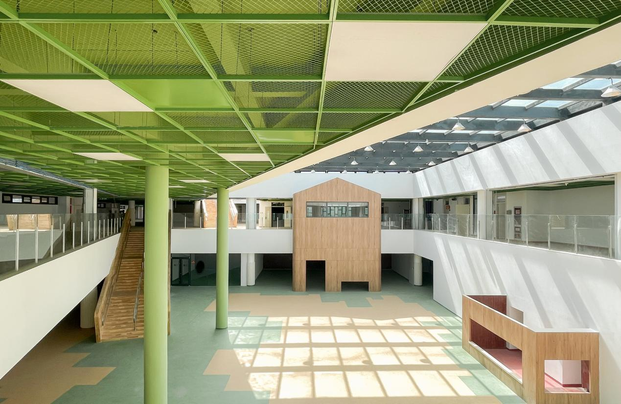 中央游戲大廳支持快速切換教學、游戲活動場景,各開放教學空間可以根據教學需求完成功能轉換,滿足幼兒園的教學理念;屋頂露臺方便孩子們戶外活動,落地玻璃窗實現室內外視覺連通,便于老師監護與自然教育滲透。豐富的建筑空間滿足孩子們在這里探索、學習和生活。