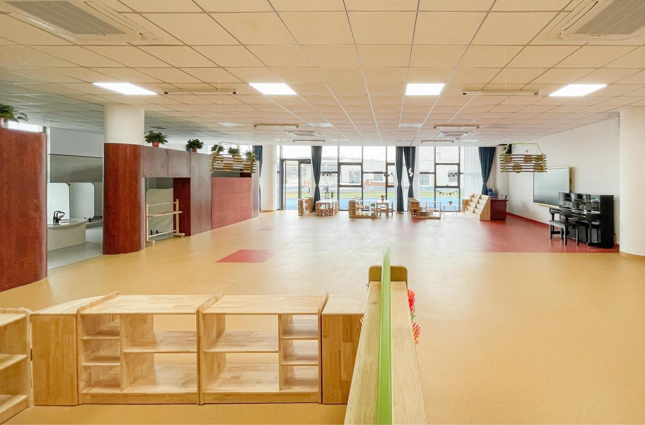 設計注重適幼化細節設計,空間尺度及家具尺寸符合幼兒人體工學,采用圓角家具、防撞軟包,營造園區安全溫馨的氛圍。室內整體色彩以木色為主,局部亮色突出活力,營造家的溫馨和歸屬感。