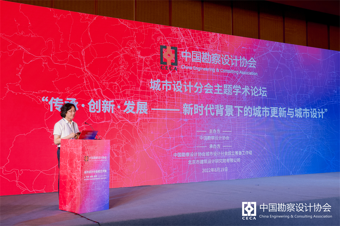 2022年8月19日,中國勘察設計協會城市設計分會成立大會暨“傳承·創新·發展——新時代背景下的城市更新與城市設計”主題學術論壇在京召開。中國工程院院士馬國馨、王建國,住房城鄉建設部建筑節能與科技司副司長汪科,中國勘察設計協會理事長朱長喜,中國勘察設計協會副理事長徐全勝等出席會議。來自全國106名會員以線下或線上的形式參加會議。